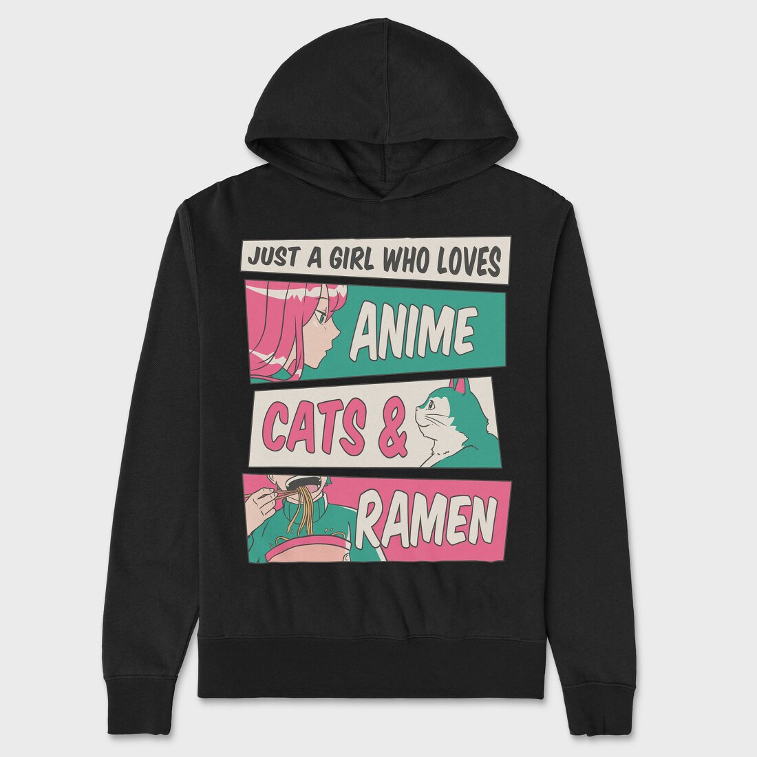 Anime Girl Cat And Ramen, Hanorac Oversize Barbati (Unisex)