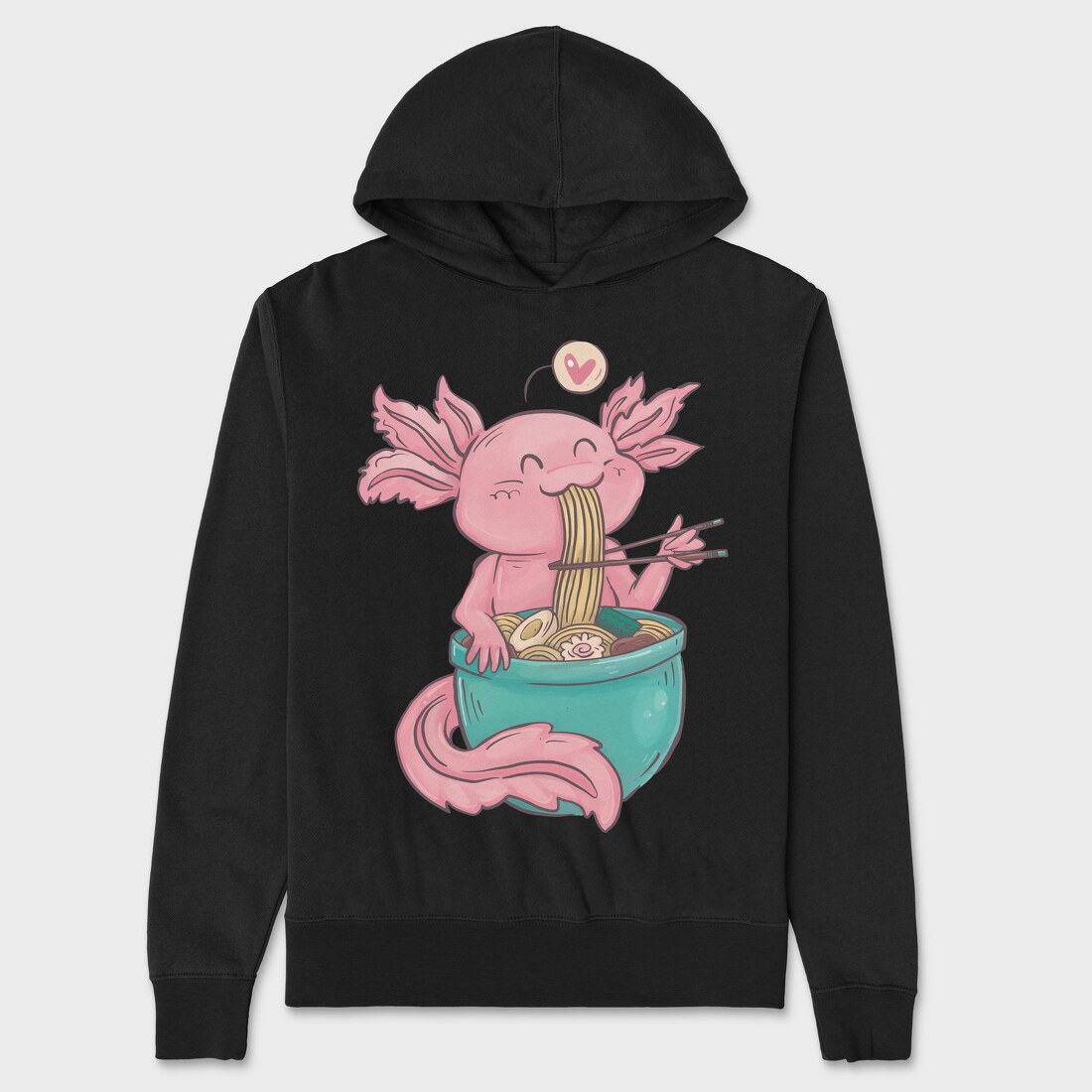 Axolotl Eating Ramen Happy, Hanorac Oversize Barbati (Unisex)