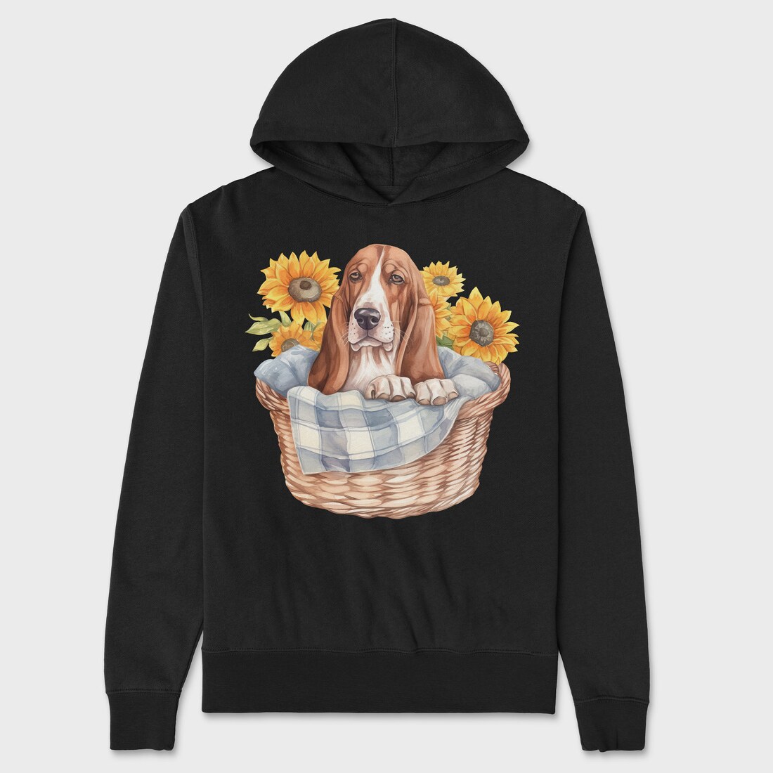 Basset Hound Sunflowers, Hanorac Oversize Barbati (Unisex)