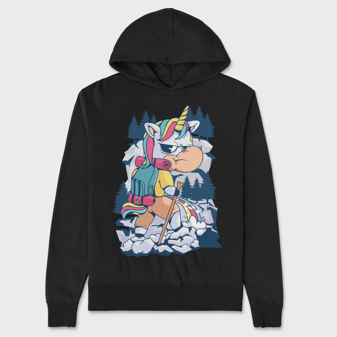 Cartoon Unicorn Hiking Pee On Mountain, Hanorac Oversize Barbati (Unisex)