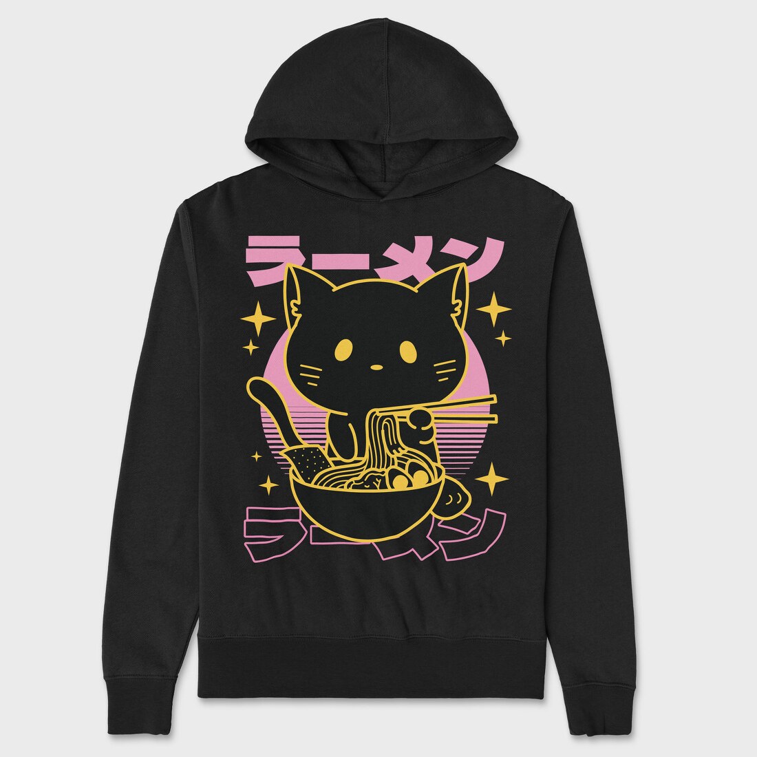 Cat Eating Ramen Food Retro, Hanorac Oversize Barbati (Unisex)