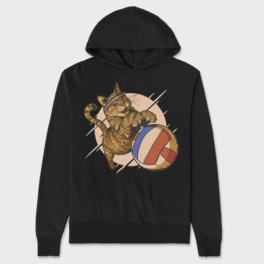 Cat Playing Volleyball, Hanorac Oversize Barbati (Unisex)