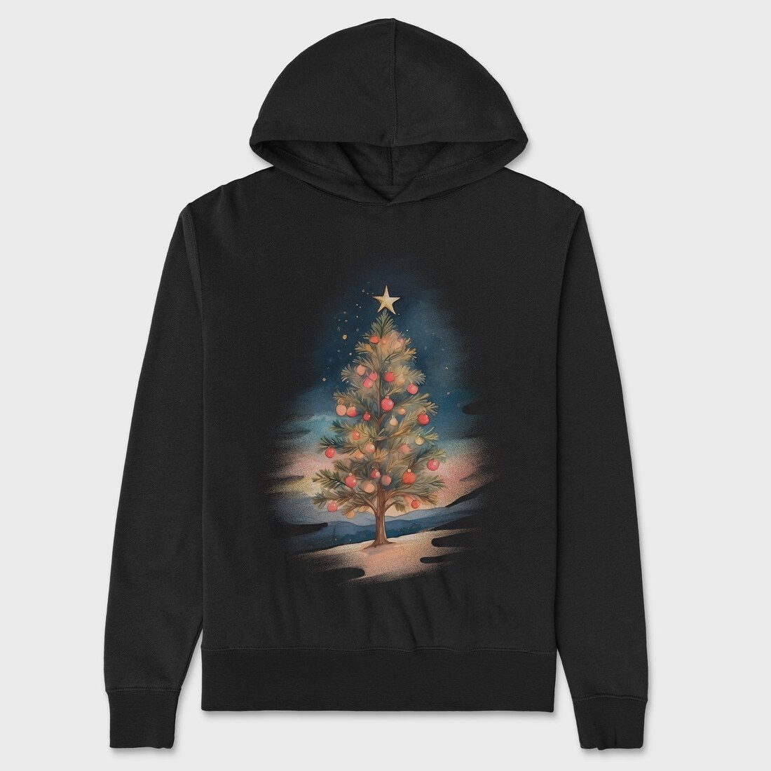Christmas Tree Watercolor, Hanorac Oversize Barbati (Unisex)