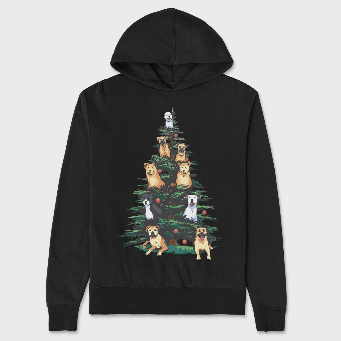 Christmas Tree With Dogs Realistic, Hanorac Oversize Barbati (Unisex)
