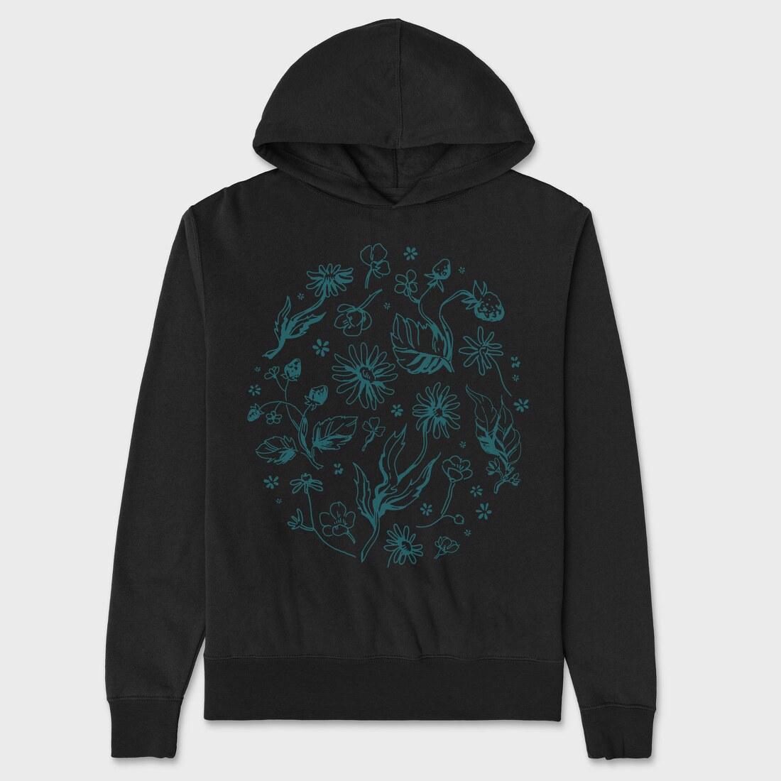 Circle Of Flowers And Leaves Botanical Line Elements, Hanorac Oversize Barbati (Unisex)