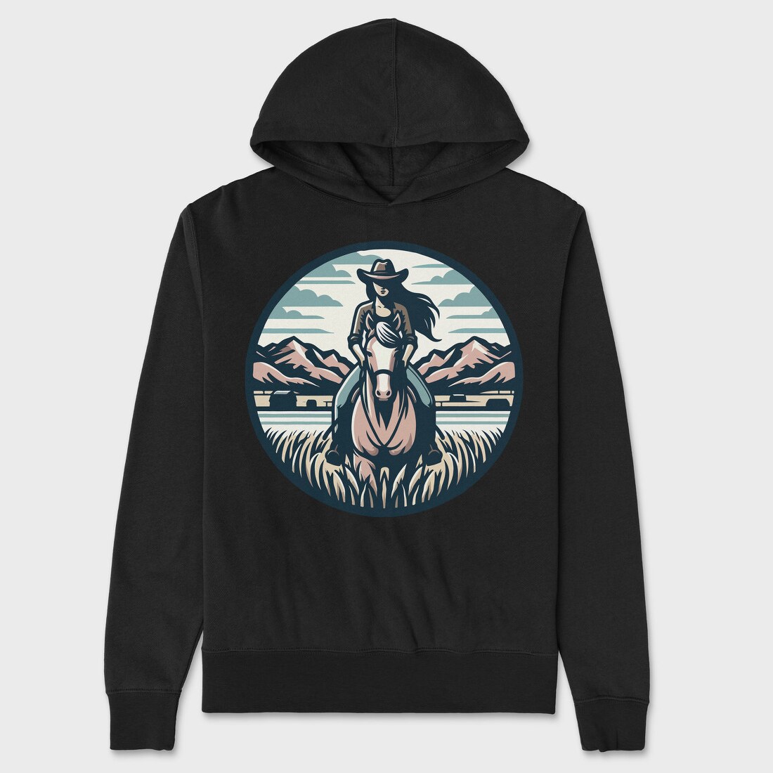 Cowgirl Riding Horse Scenic, Hanorac Oversize Barbati (Unisex)
