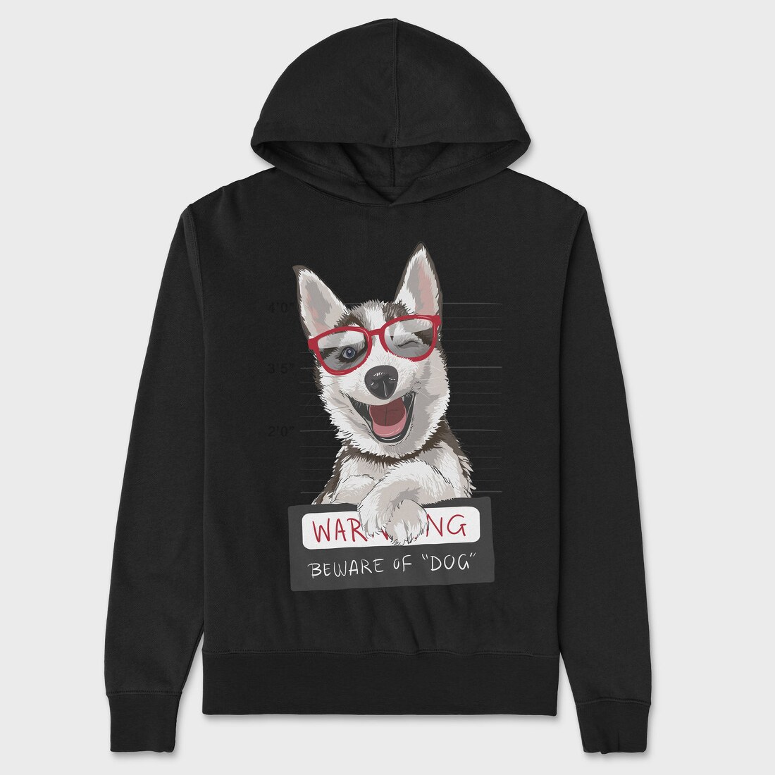 Dog Mugshot Warning, Hanorac Oversize Barbati (Unisex)