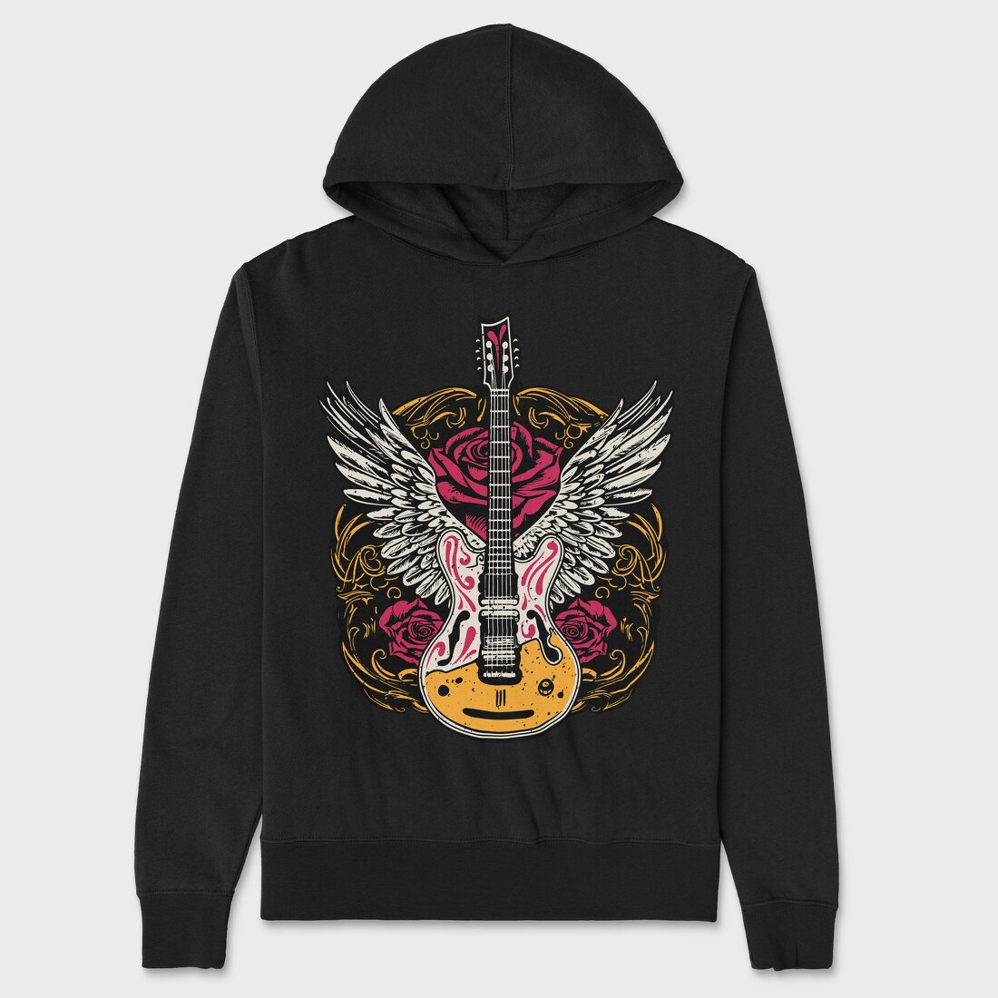 Electric Guitar With Wings And Roses, Hanorac Oversize Barbati (Unisex)