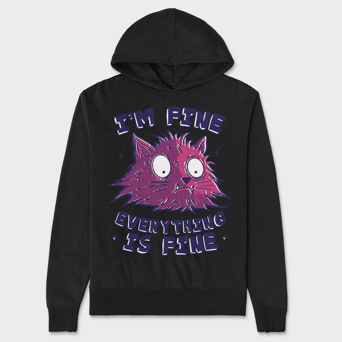Everything Is Fine Stressed Cat, Hanorac Oversize Barbati (Unisex)