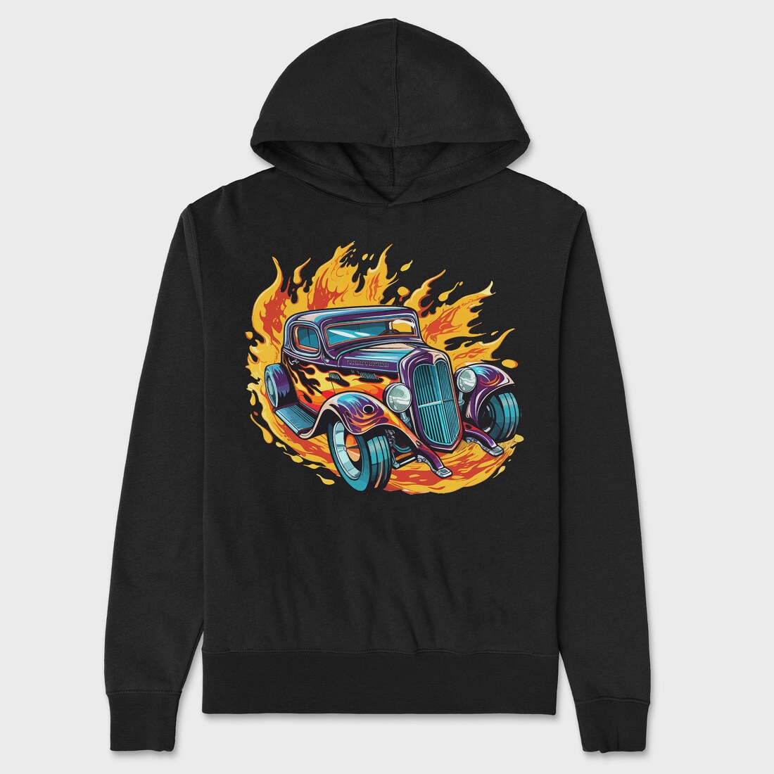 Flame Hotrod Old Car, Hanorac Oversize Barbati (Unisex)