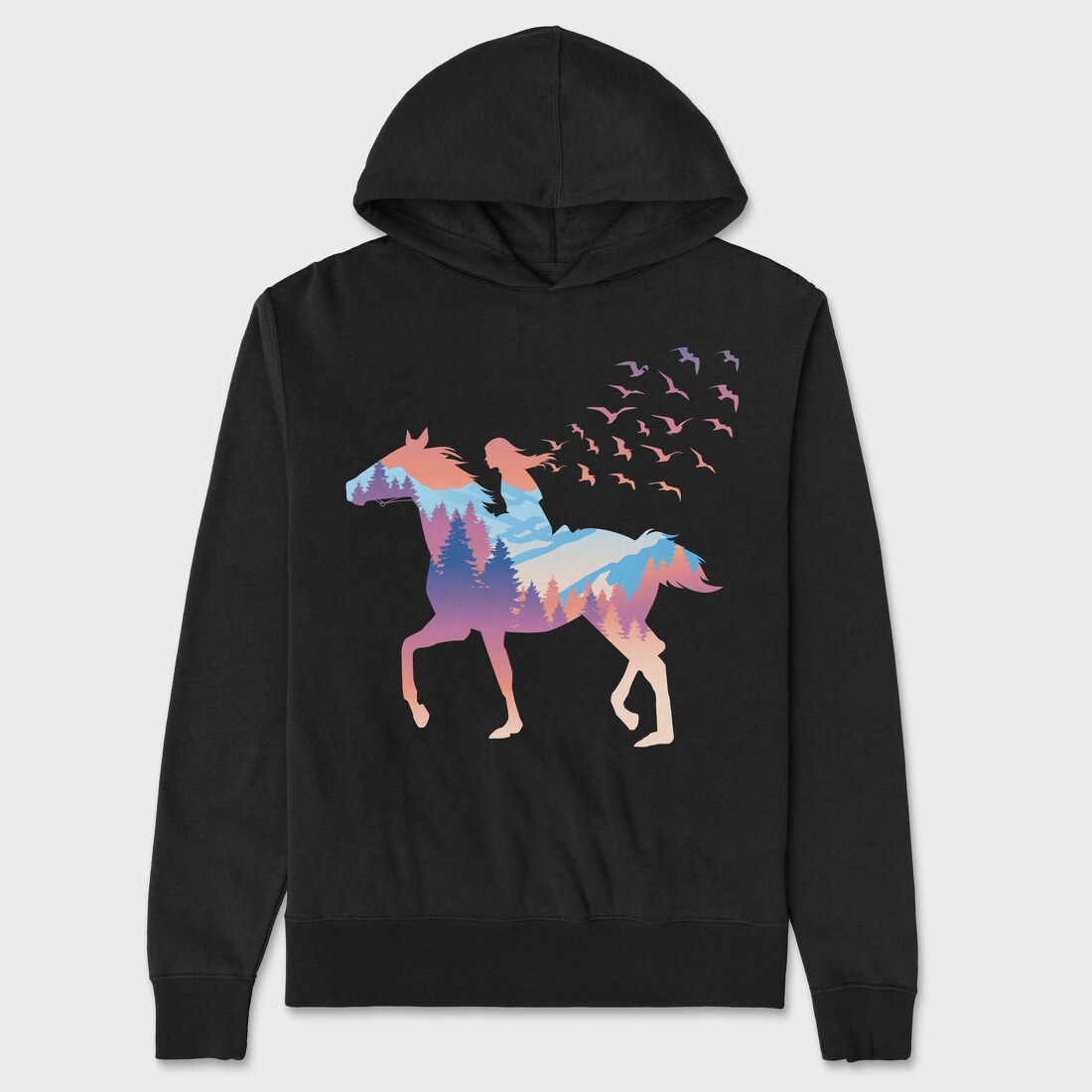 Girl And Horse Forest Winter Landscape, Hanorac Oversize Barbati (Unisex)