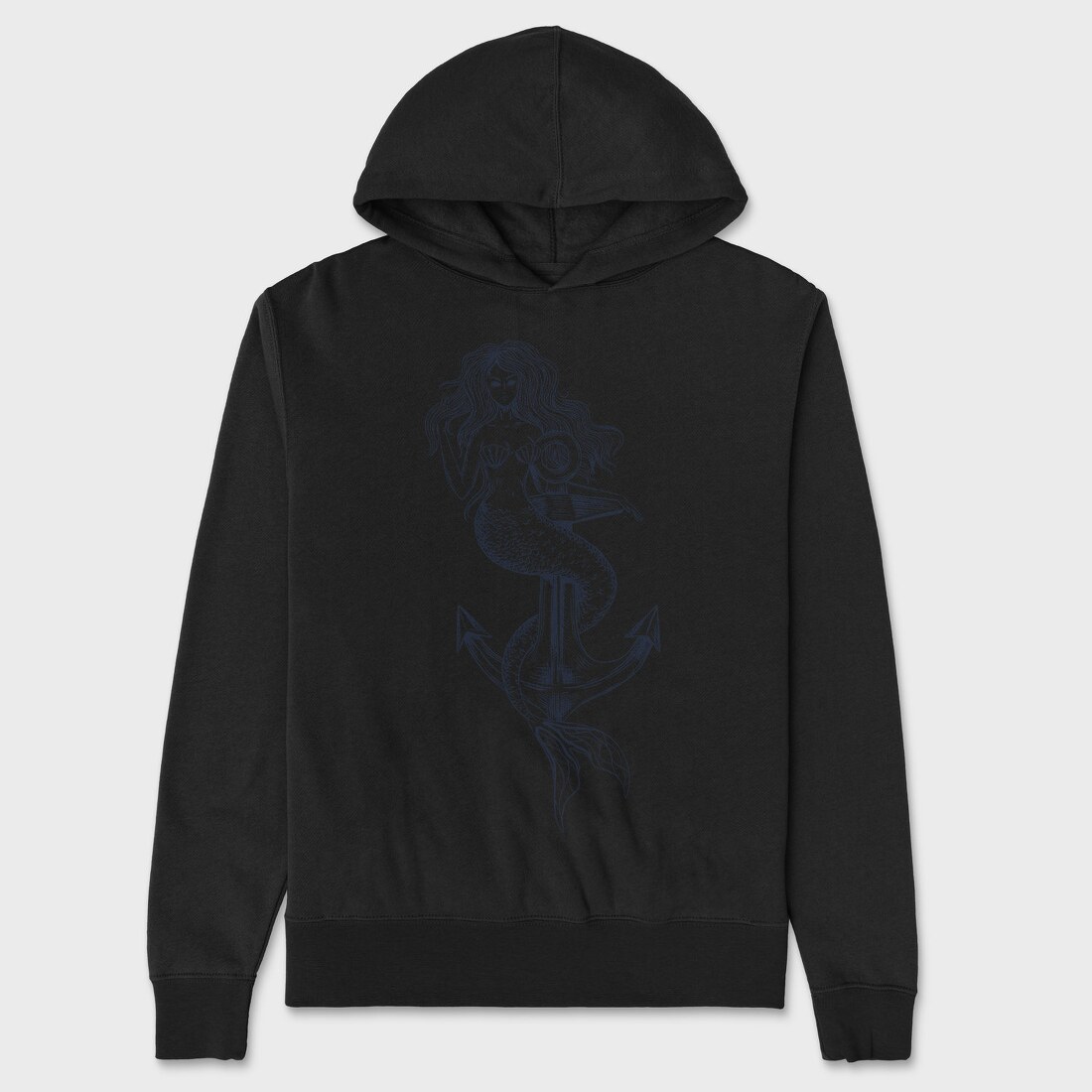 Hand Drawn Mermaid Siren And Anchor, Hanorac Oversize Barbati (Unisex)