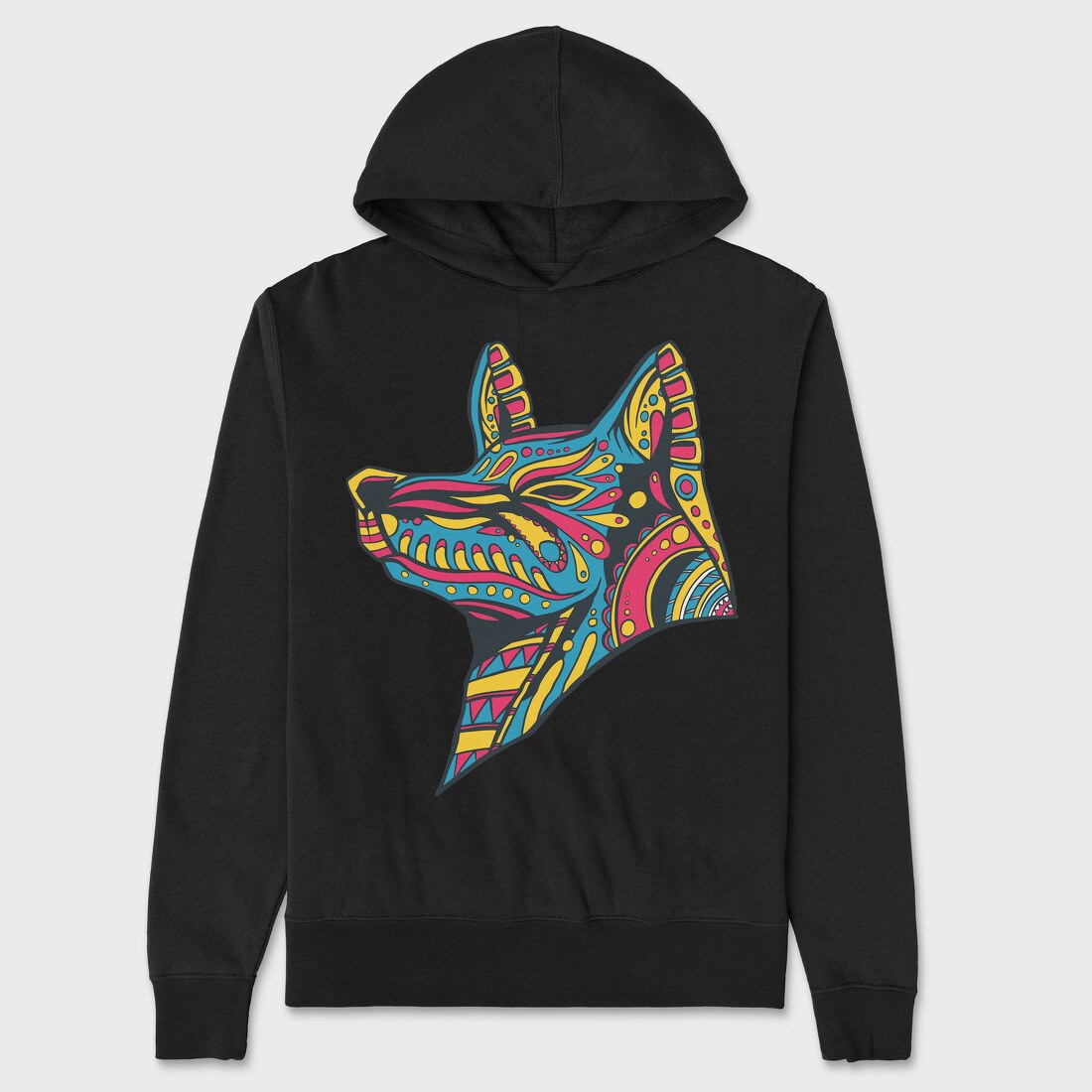 Huichol Colorful Wolf, Hanorac Oversize Barbati (Unisex)