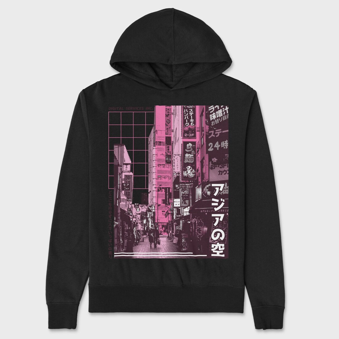 Japanese City Photographic Asian Street, Hanorac Oversize Barbati (Unisex)