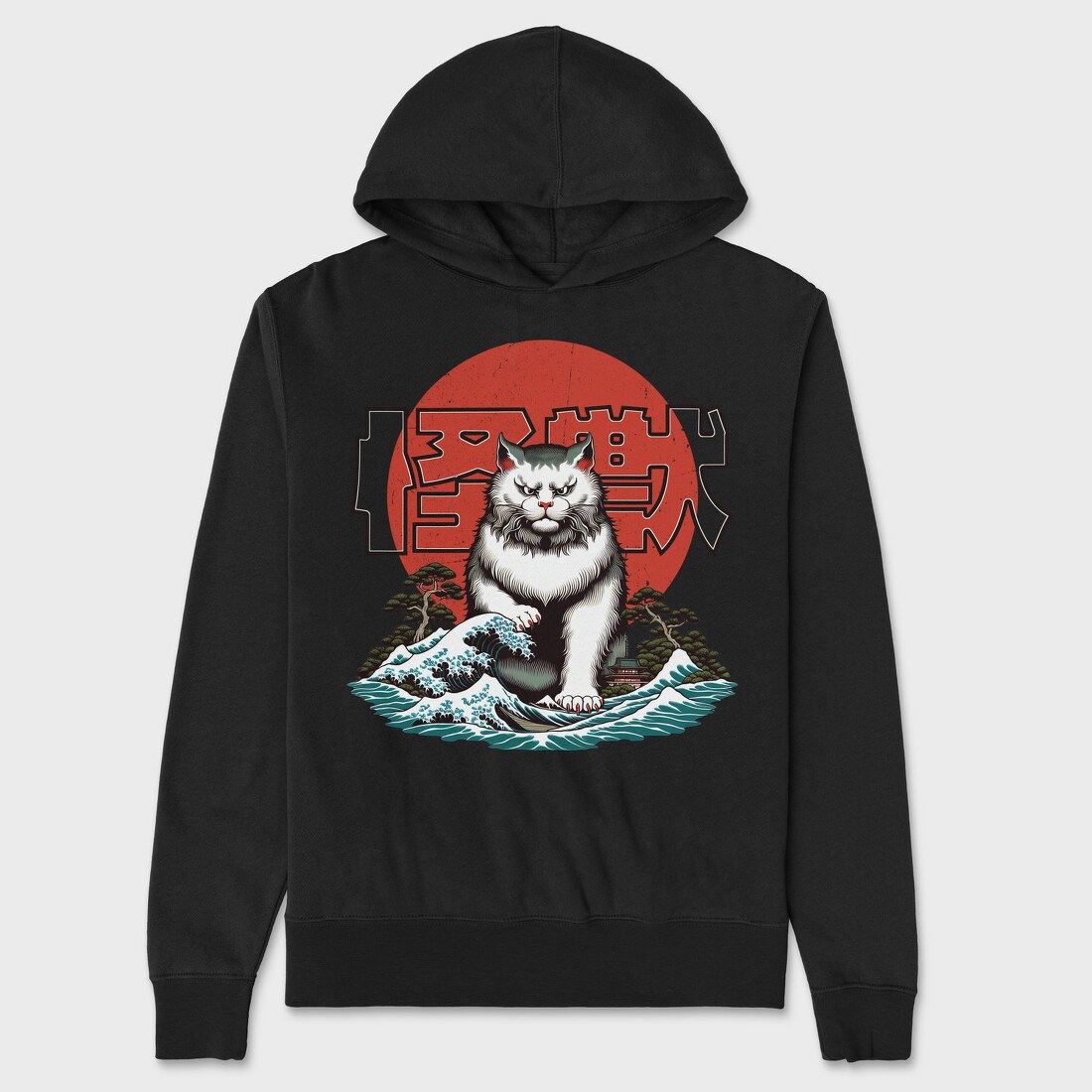 Japanese Wave Cat Catzilla, Hanorac Oversize Barbati (Unisex)