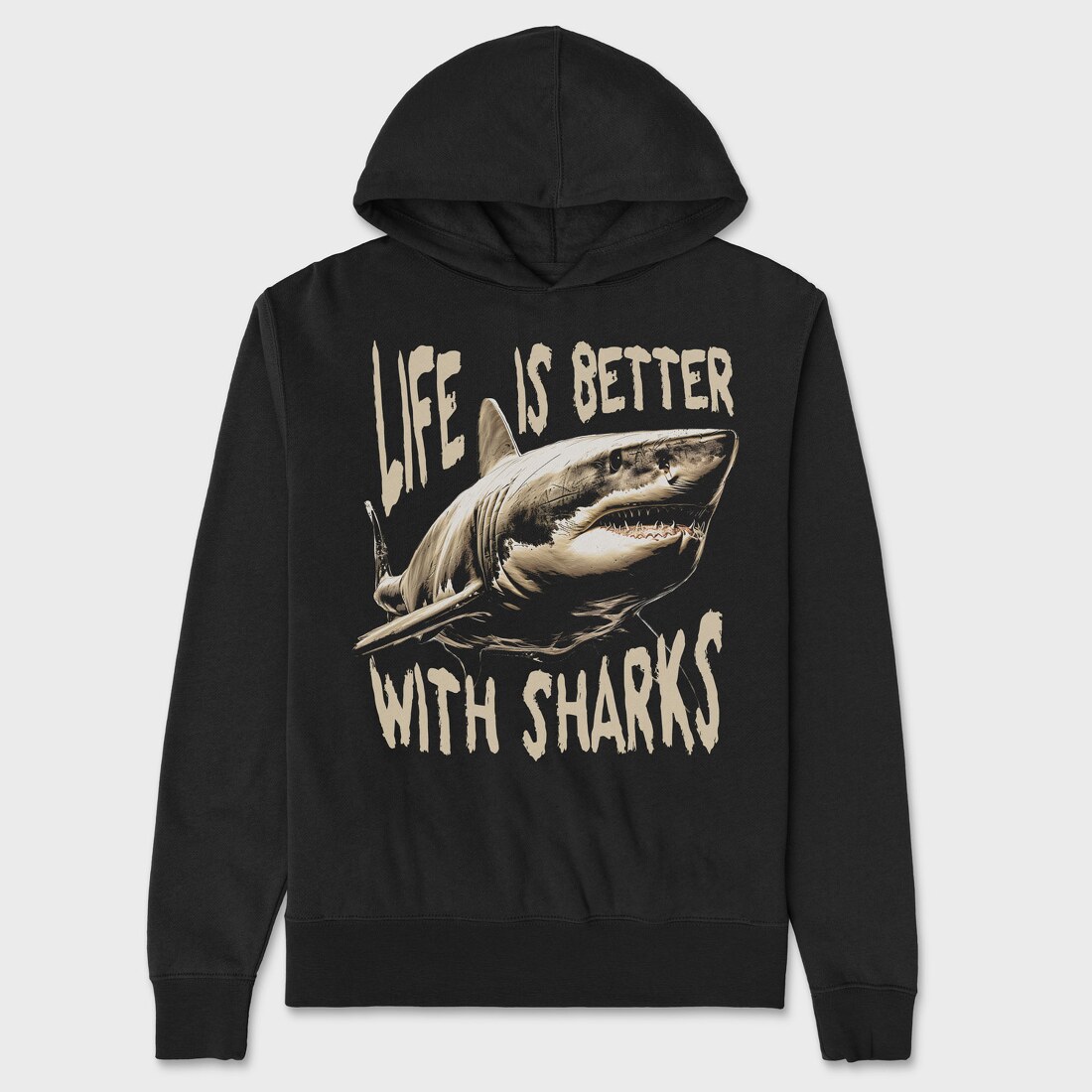 Life Is Better With Sharks, Hanorac Oversize Barbati (Unisex)