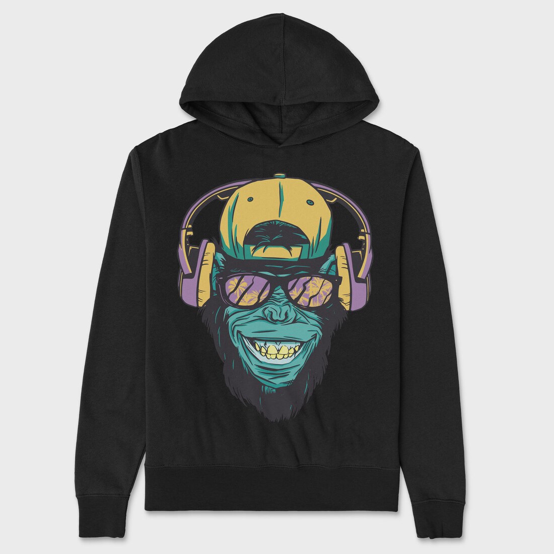 Monkey With Headphones, Hanorac Oversize Barbati (Unisex)