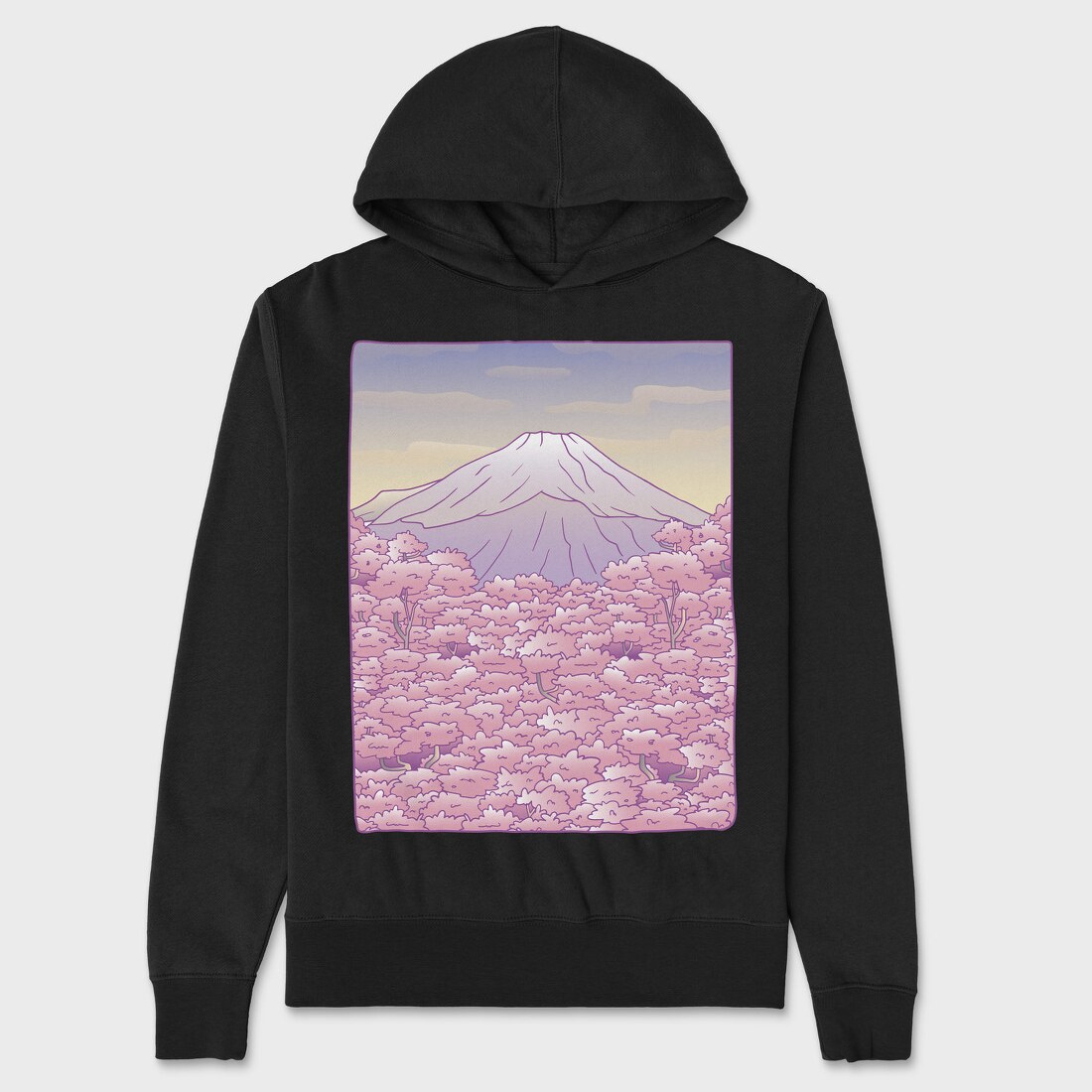 Pastel Sakura Mount Fuji, Hanorac Oversize Barbati (Unisex)