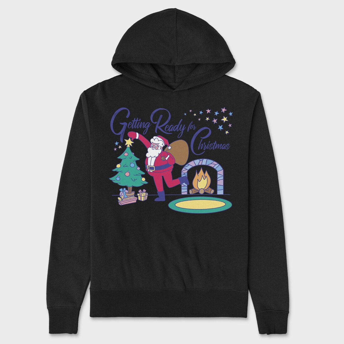Santa Getting Ready for Christmas, Hanorac Oversize Barbati (Unisex)