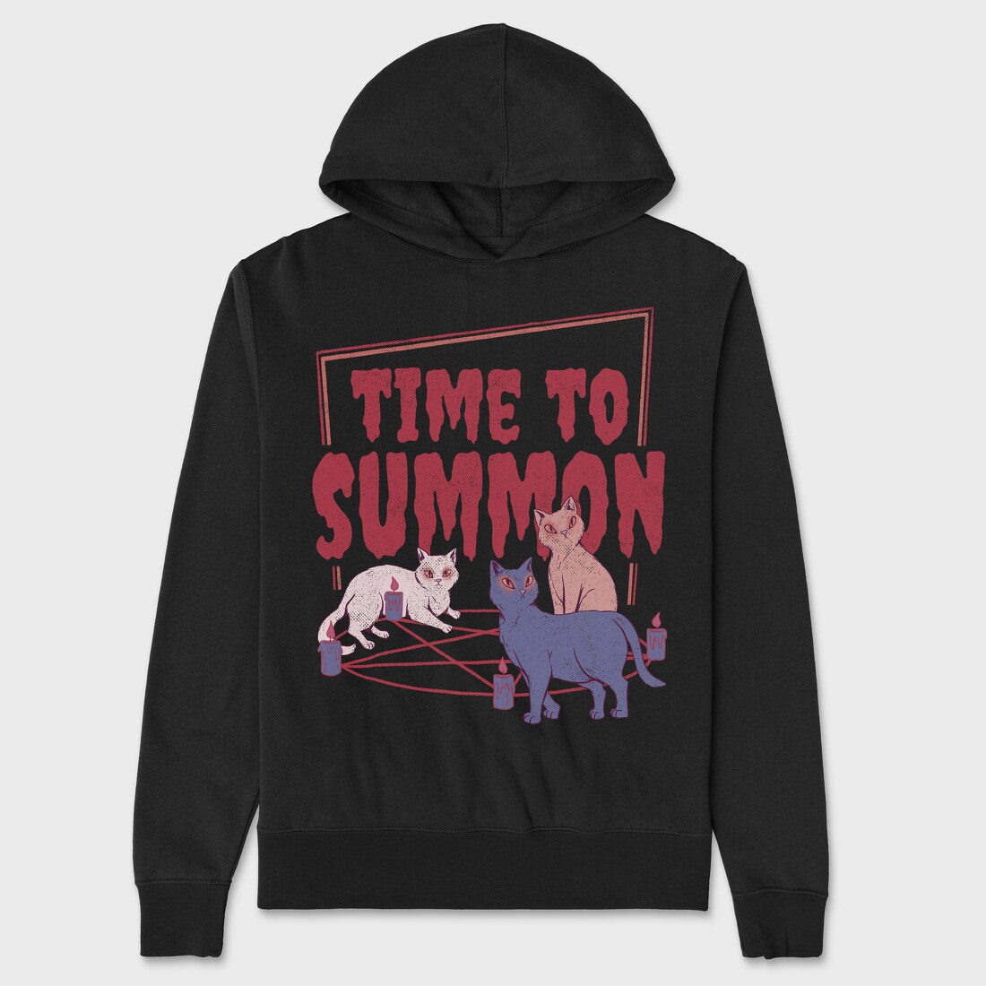 Satanic Cats With Pentagram Time To Summon, Hanorac Oversize Barbati (Unisex)