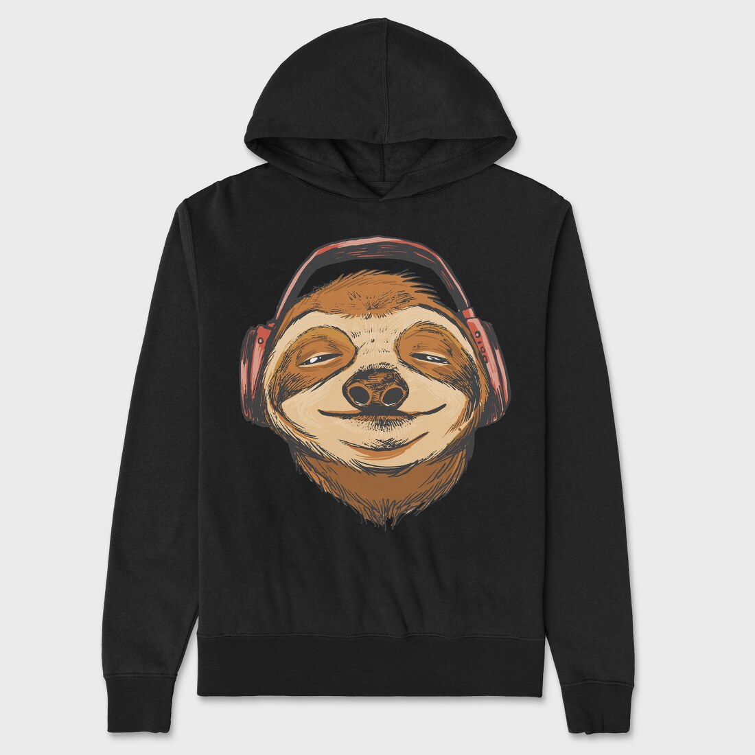 Sloth Animal With Earphones Headphones, Hanorac Oversize Barbati (Unisex)