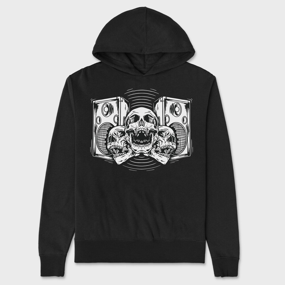 Speakers And Skulls Hand Drawn, Hanorac Oversize Barbati (Unisex)