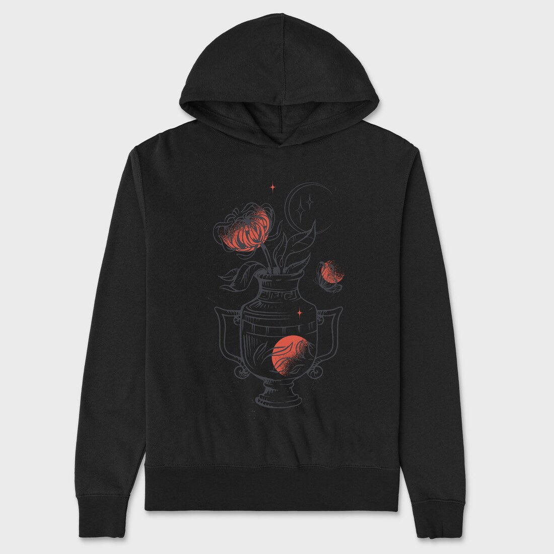 Tattoo Floral Vase Chrysanthemum Moon Red Black, Hanorac Oversize Barbati (Unisex)
