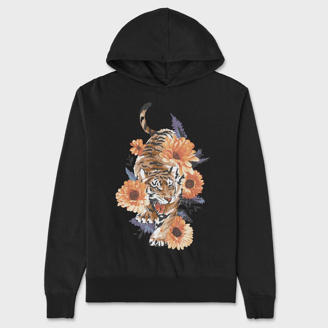 Tiger Floral Attitude, Hanorac Oversize Barbati (Unisex)