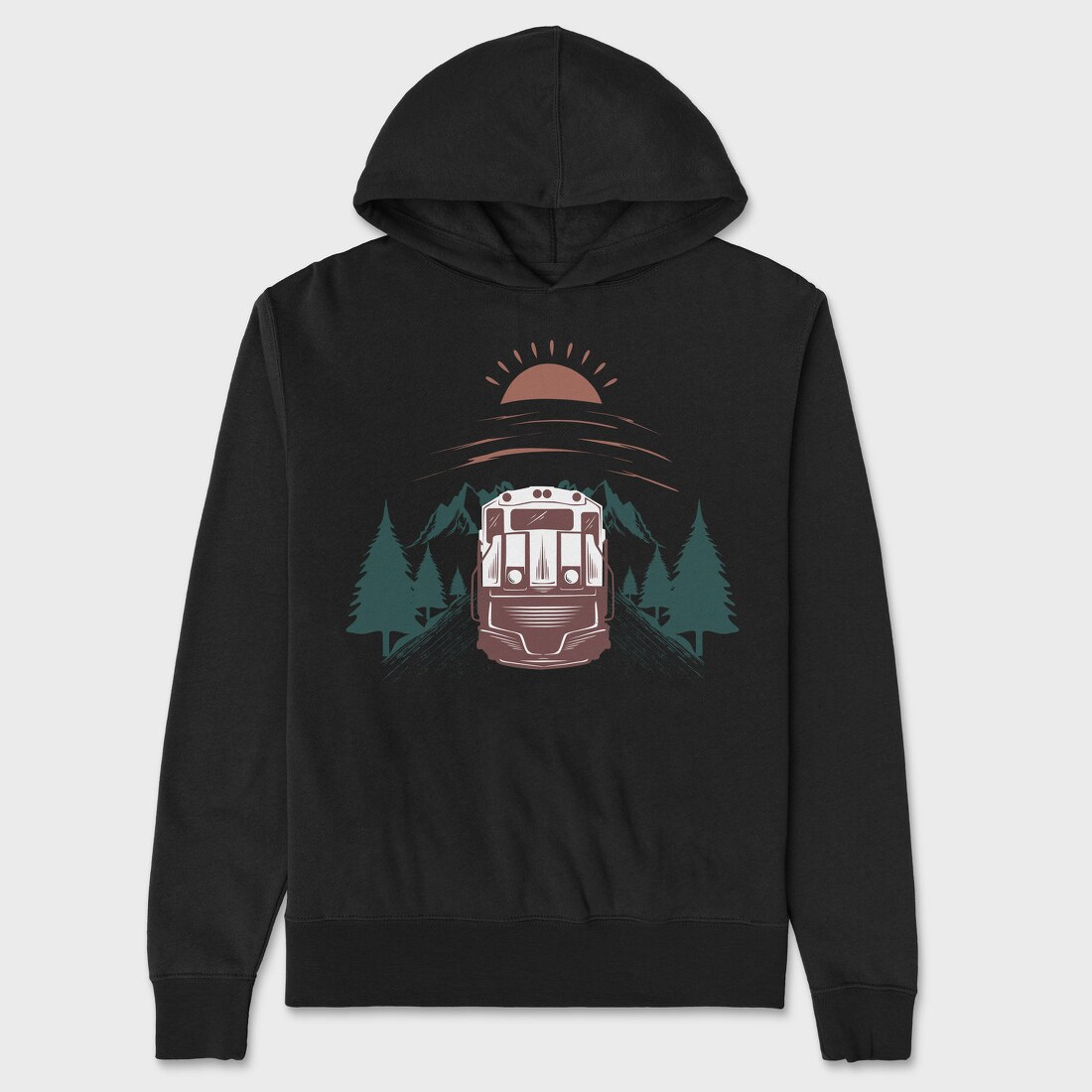 Train Mountain Sunrise, Hanorac Oversize Barbati (Unisex)
