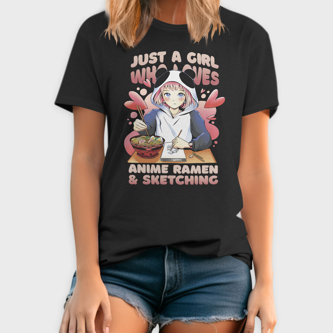 Anime Girl Ramen And Sketching, Tricou Barbati (Unisex)