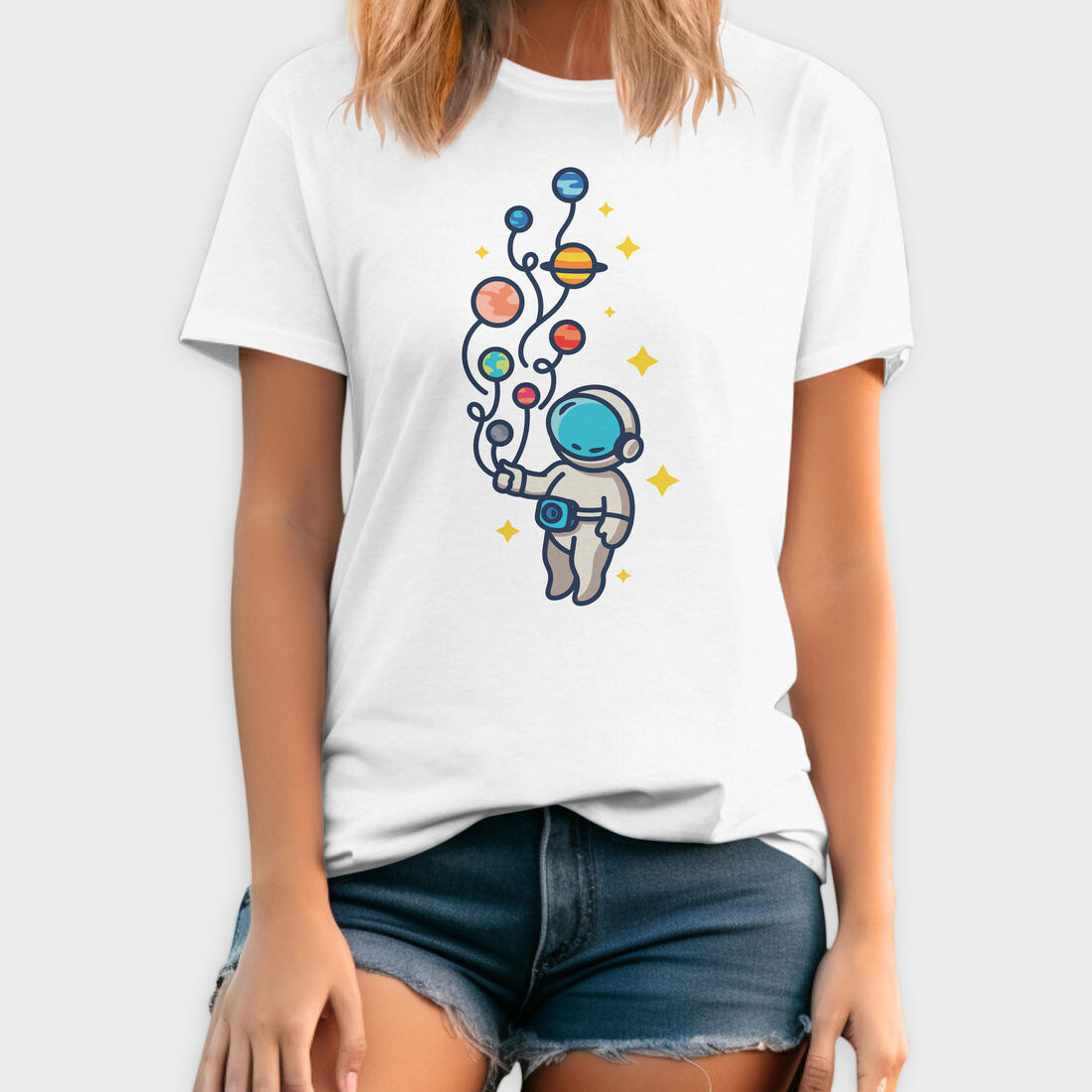 Astronaut And Balloon Planets, Tricou Barbati (Unisex)