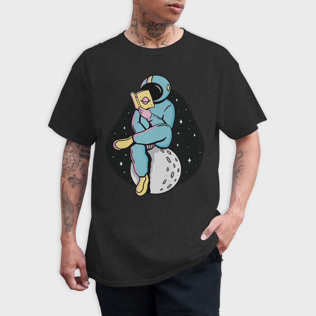 Astronaut Reading moon, Tricou Barbati (Unisex)