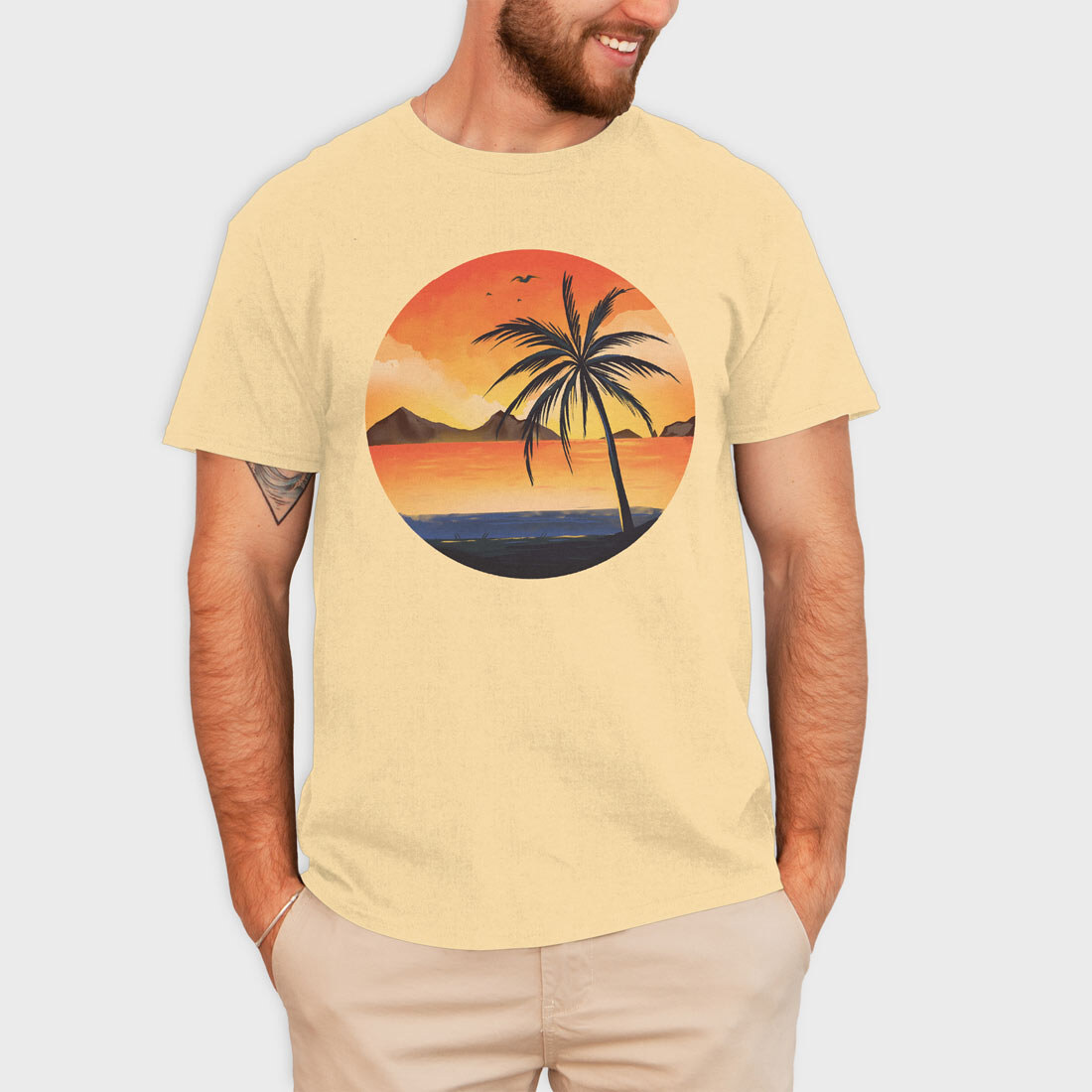 Beach Sunset Palm, Tricou Barbati (Unisex)