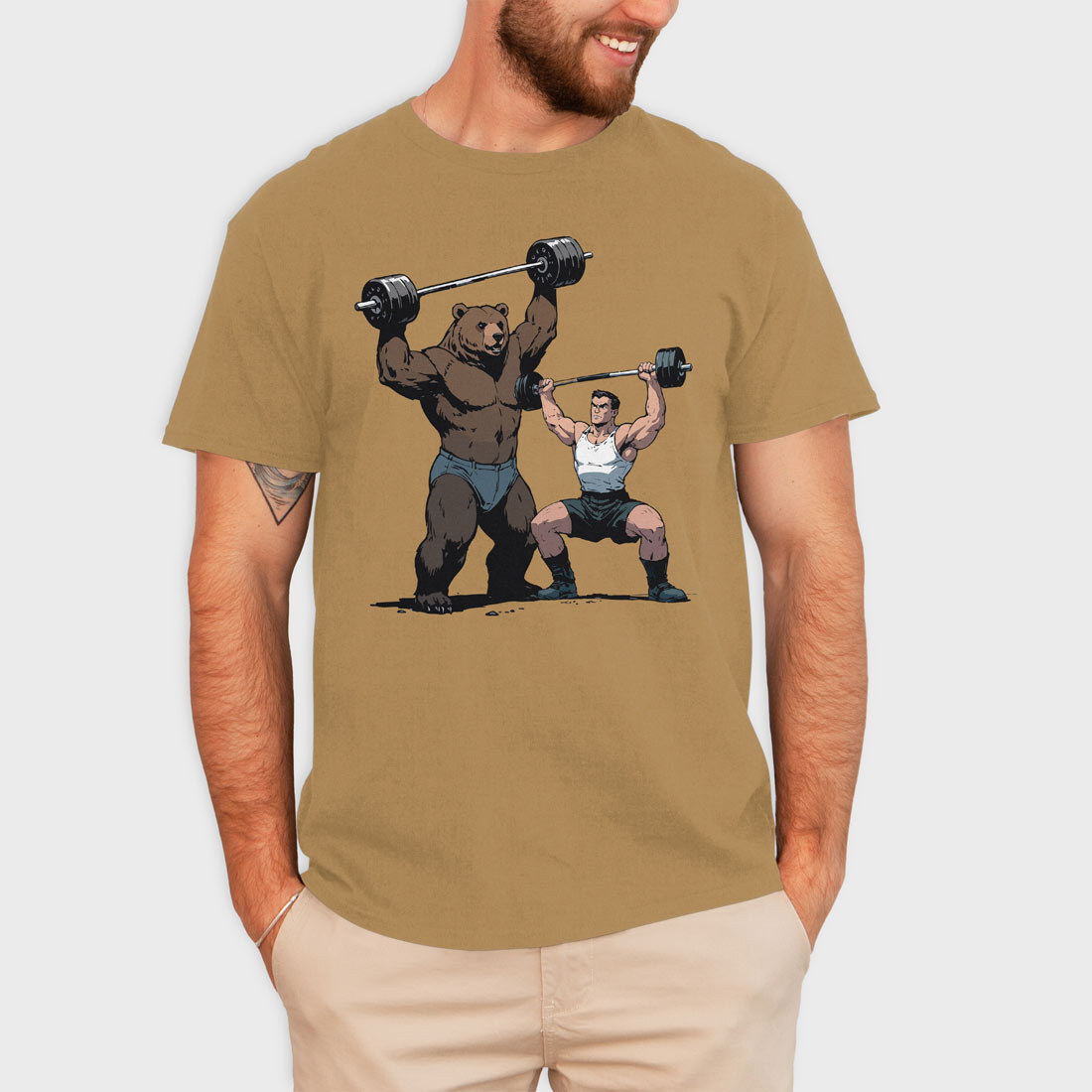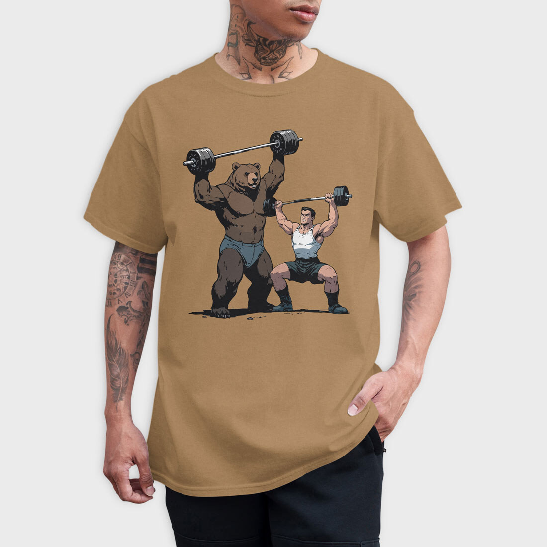 Bear and Man Lifting Weights, Tricou Barbati (Unisex)