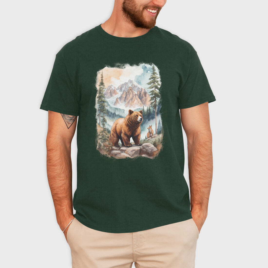 Bear Watercolor Forest, Tricou Barbati (Unisex)