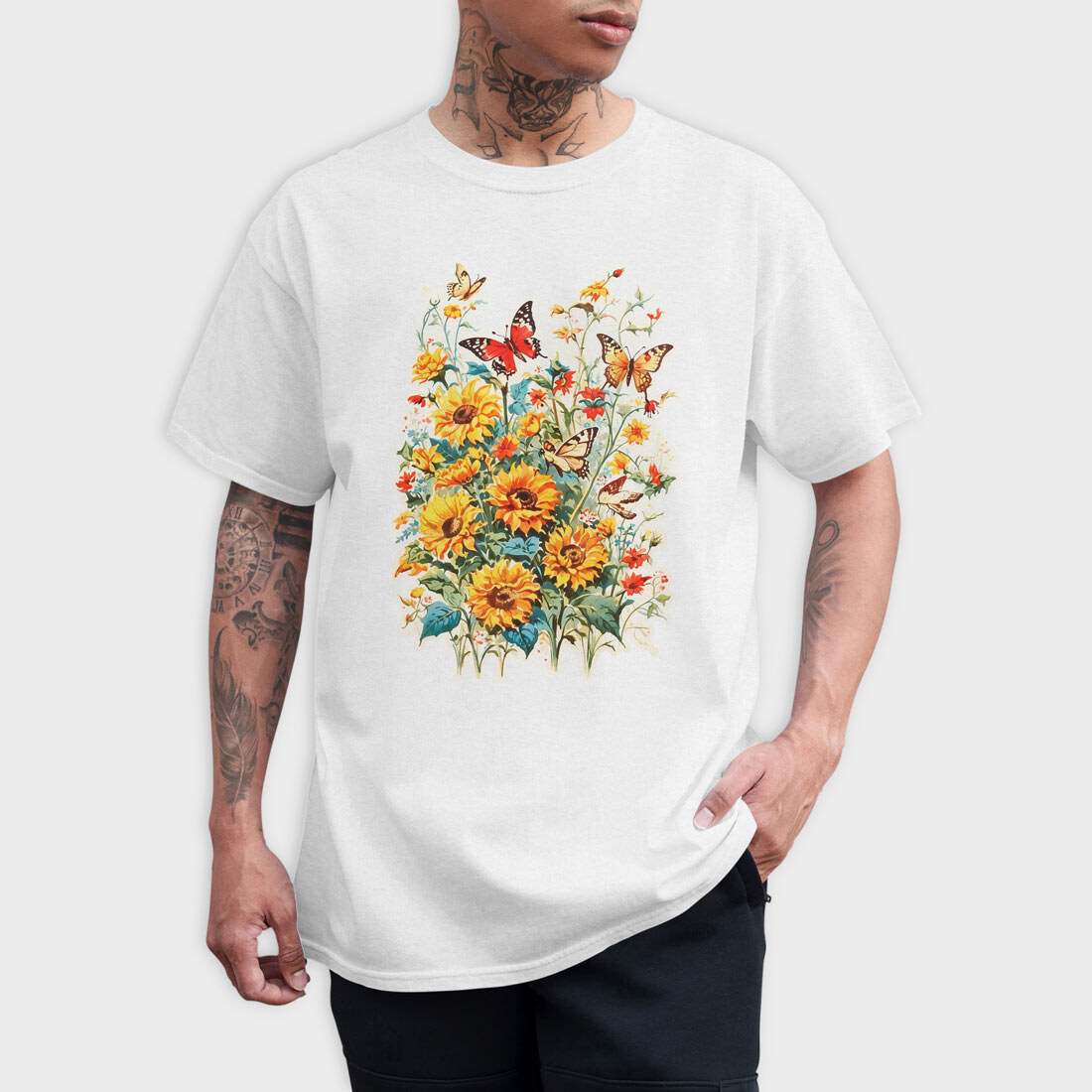Butterfly and Flowers, Tricou Barbati (Unisex)