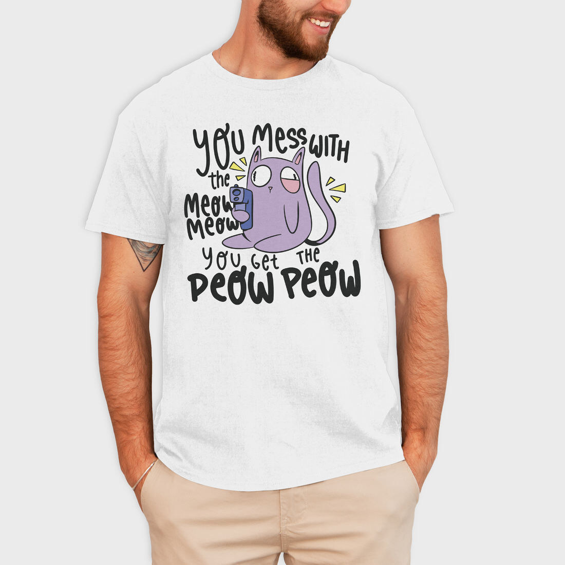 Cartoon Cat With Gun Meow Peow, Tricou Barbati (Unisex)