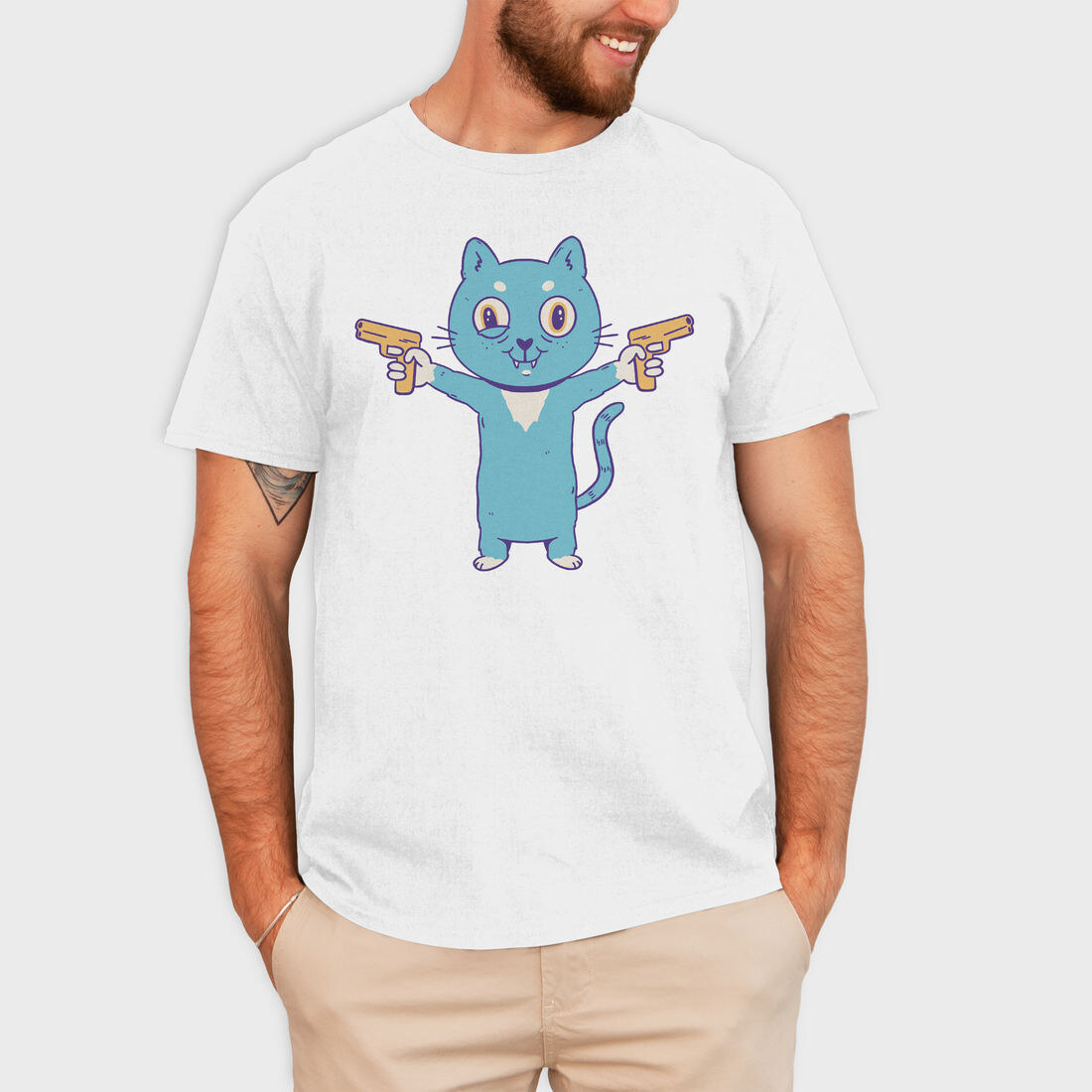 Cartoon Cat With Guns Pew Pew, Tricou Barbati (Unisex)
