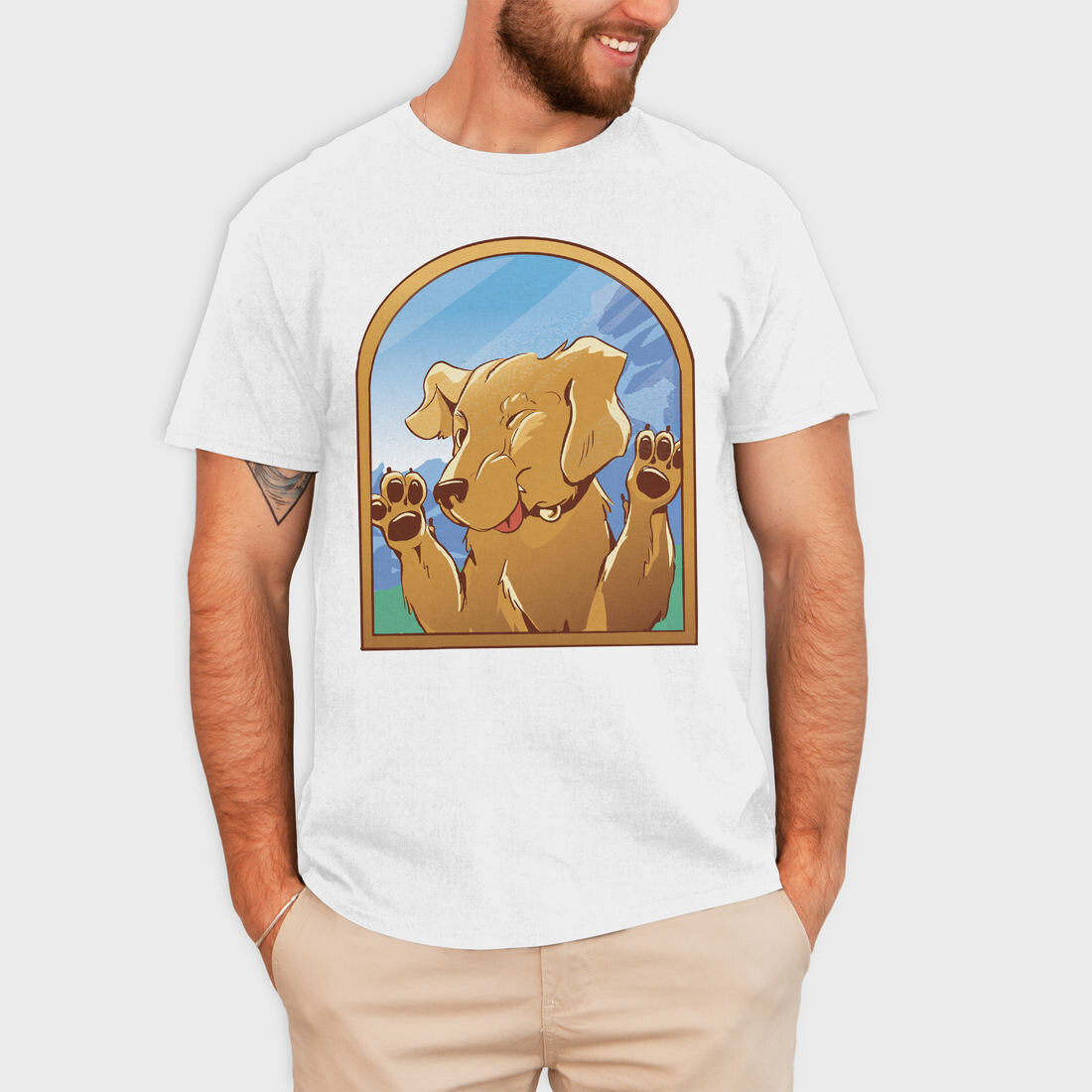 Cartoon Labrador Dog In Window Glass, Tricou Barbati (Unisex)