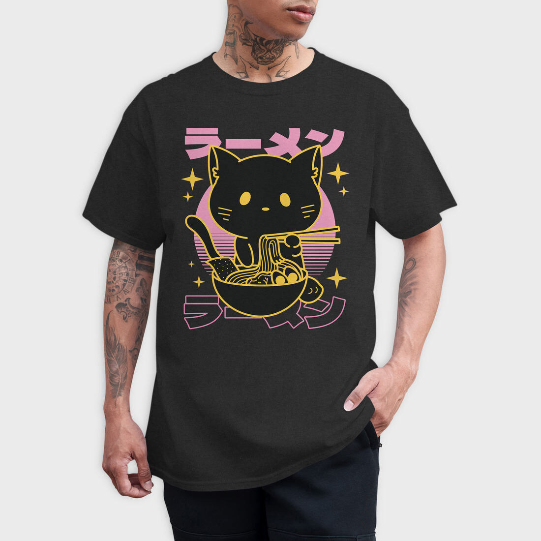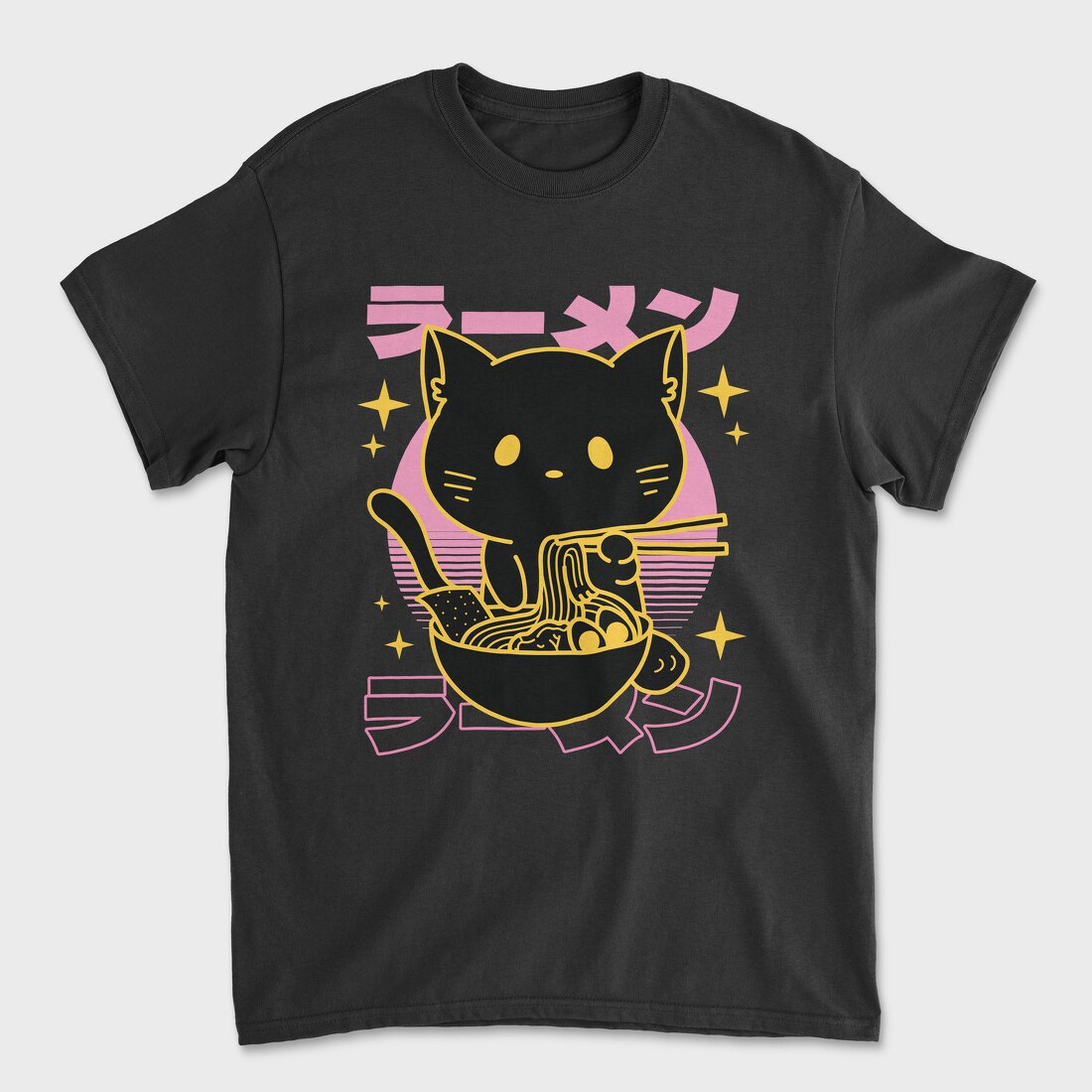 Cat Eating Ramen Food Retro, Tricou Barbati (Unisex)