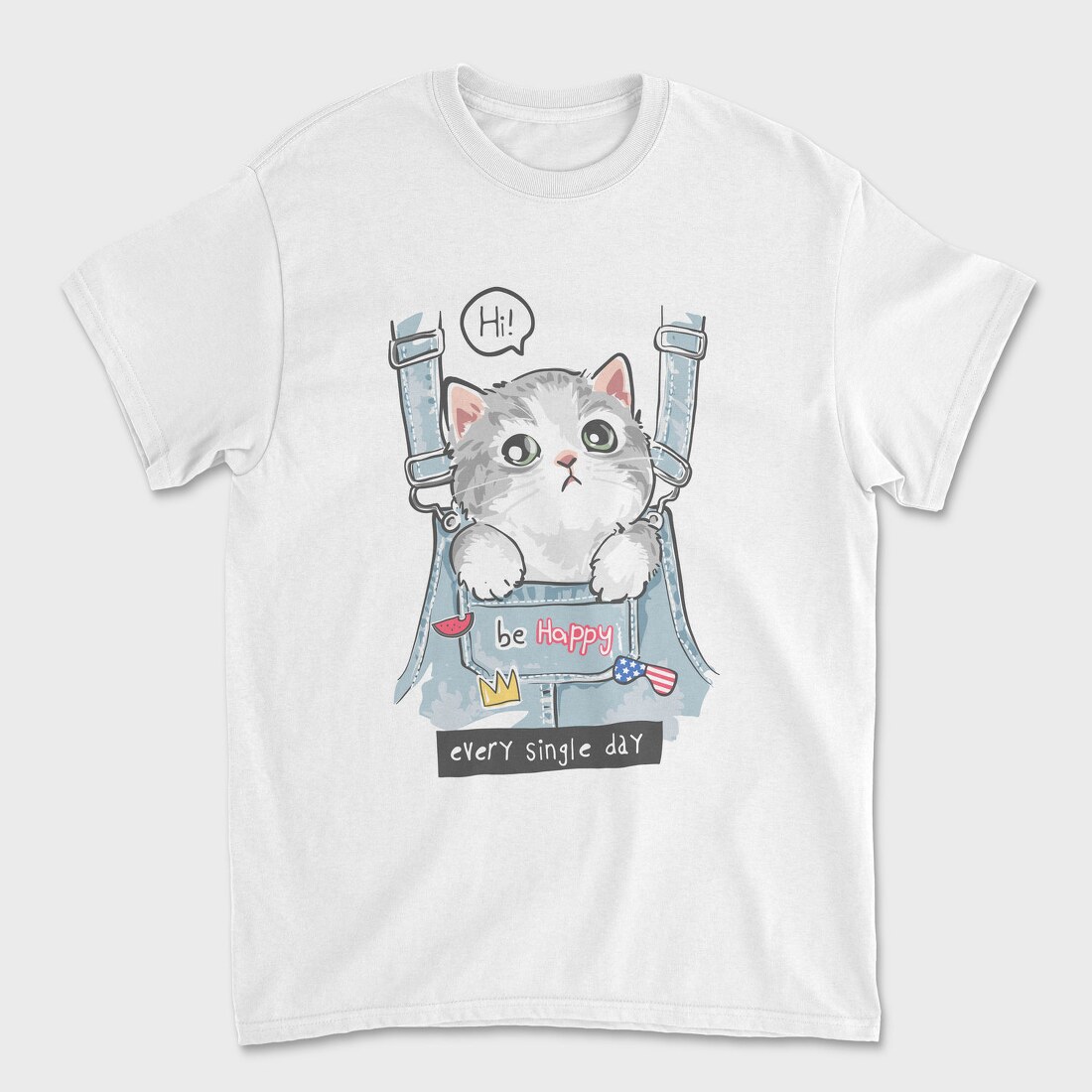 Cat In Jeans Vibes, Tricou Barbati (Unisex)