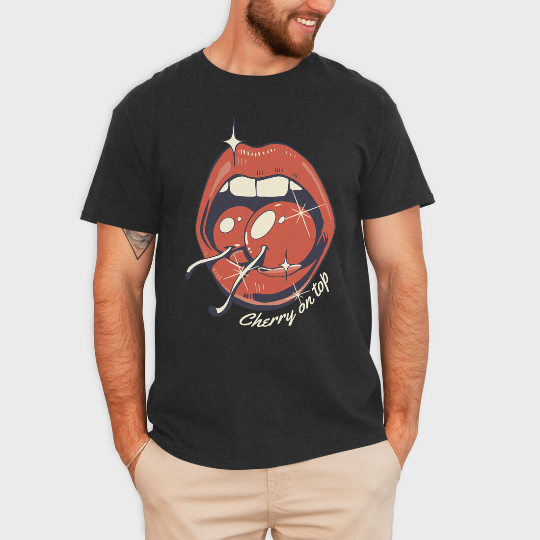 Cherry On Top Lips Kitsch, Tricou Barbati (Unisex)