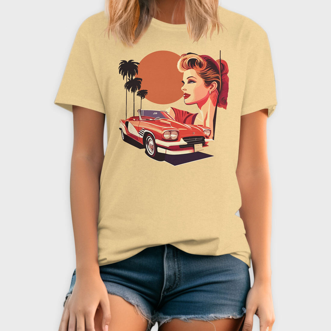 Classic Car Convertible Girl Trees, Tricou Barbati (Unisex)