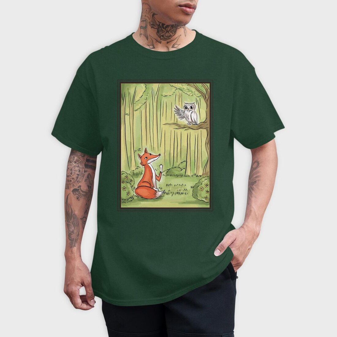 Cute Fox And Owl, Tricou Barbati (Unisex)