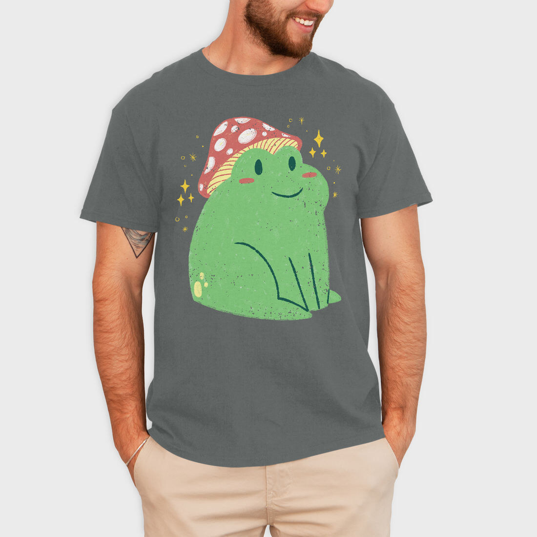 Cute Frog With Mushroom Sitting Cottage Core, Tricou Barbati (Unisex)
