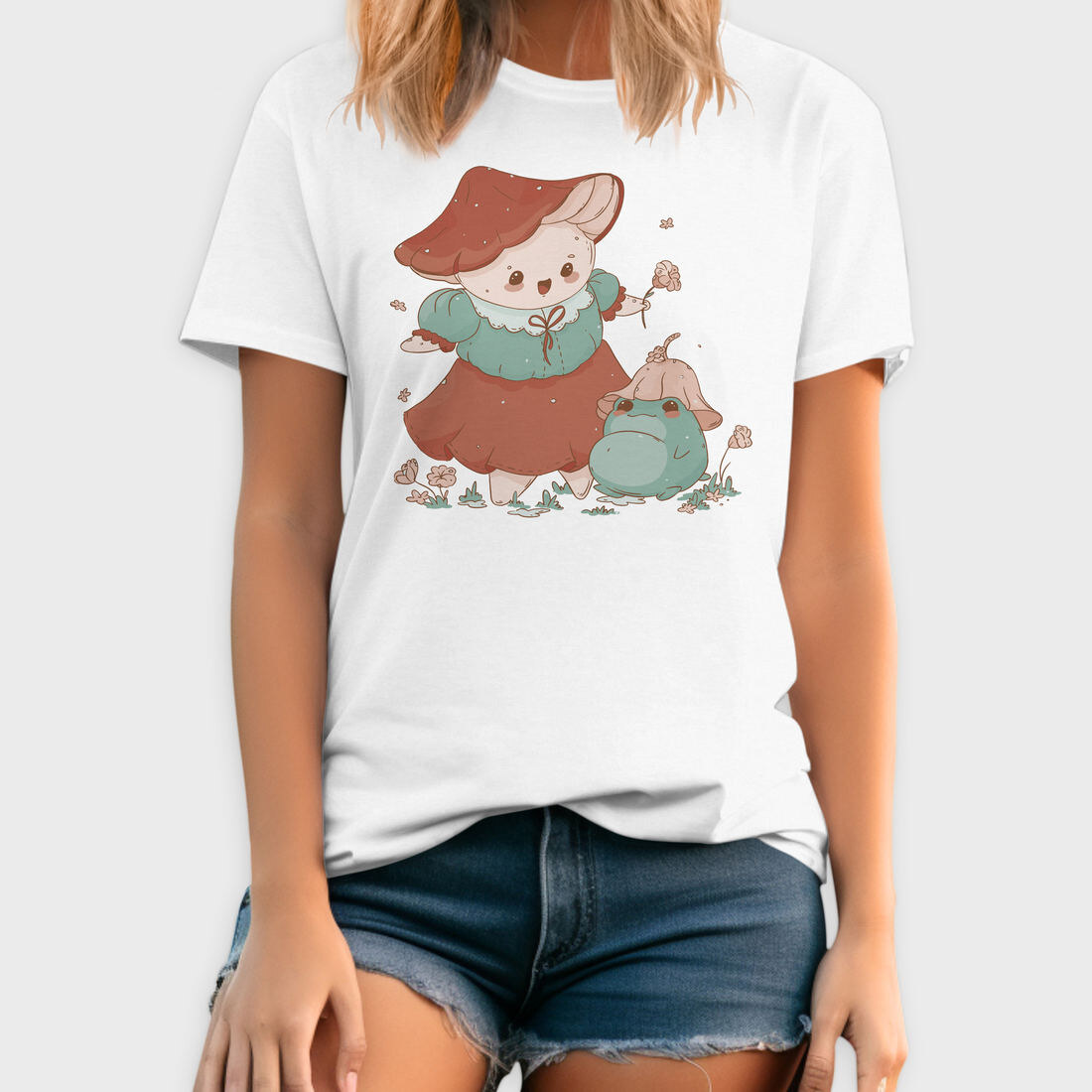 Cute Mushroom And Frog Kawaii, Tricou Barbati (Unisex)