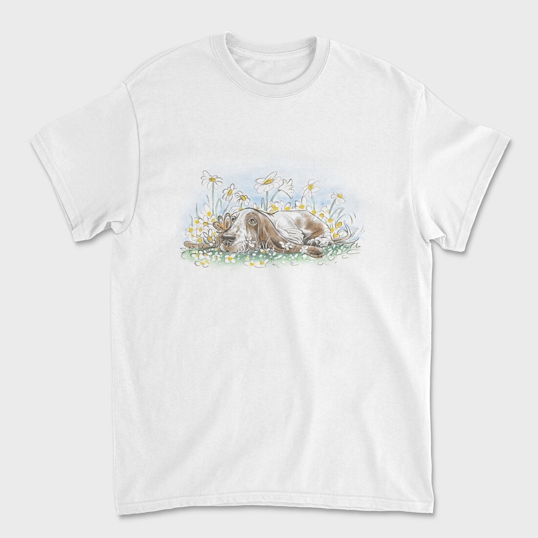 Dog On Flower Field Lying, Tricou Barbati (Unisex)