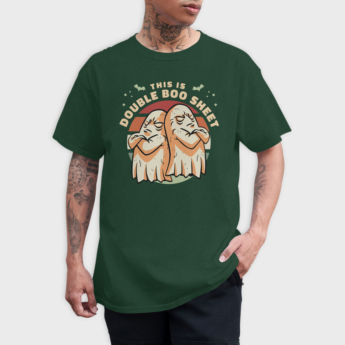 Double Boo Sheet Funny Halloween Ghosts Pun, Tricou Barbati (Unisex)