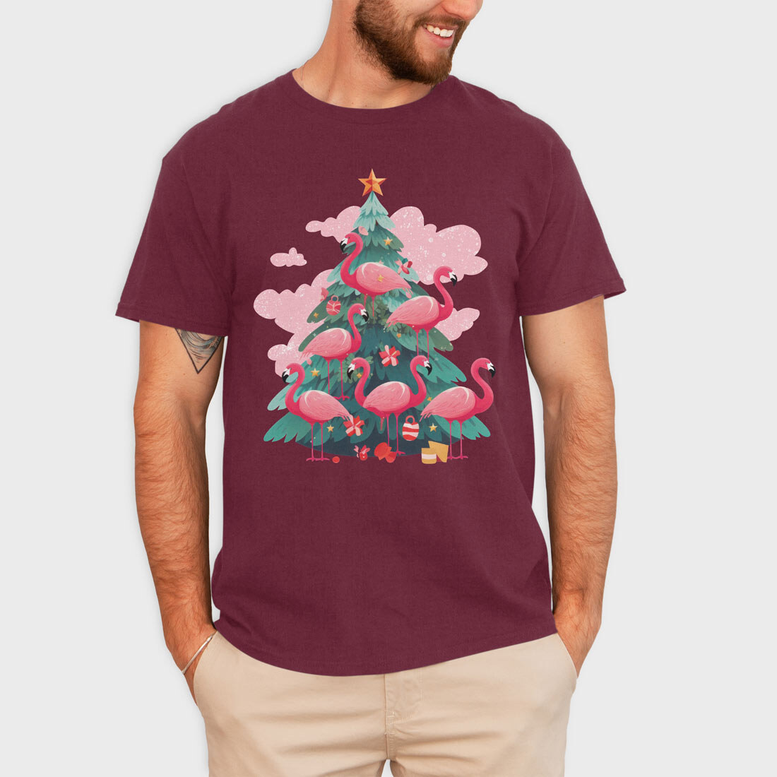 Flamingos Christmas Tree, Tricou Barbati (Unisex)