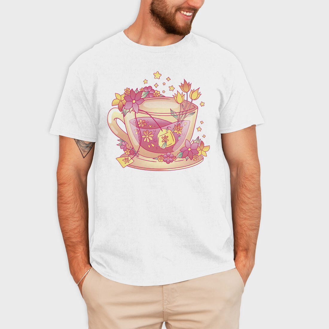 Floral Cup Of Tea Pink Kawaii, Tricou Barbati (Unisex)